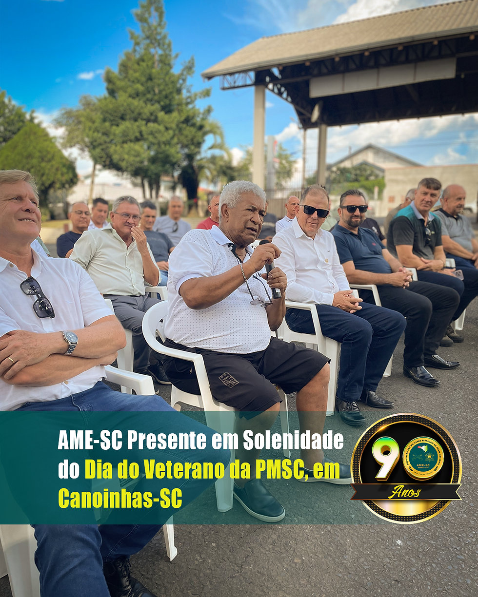 Na última terça-feira, 25, o conselheiro da AME-SC, Subtenente Jacomel, representando o presidente da Associação, esteve presente no 3º Batalhão de Polícia Militar (BPM) em Canoinhas, que foi palco da solenidade em homenagem ao Dia dos Veteranos da Polícia Militar de Santa Catarina (PMSC).
