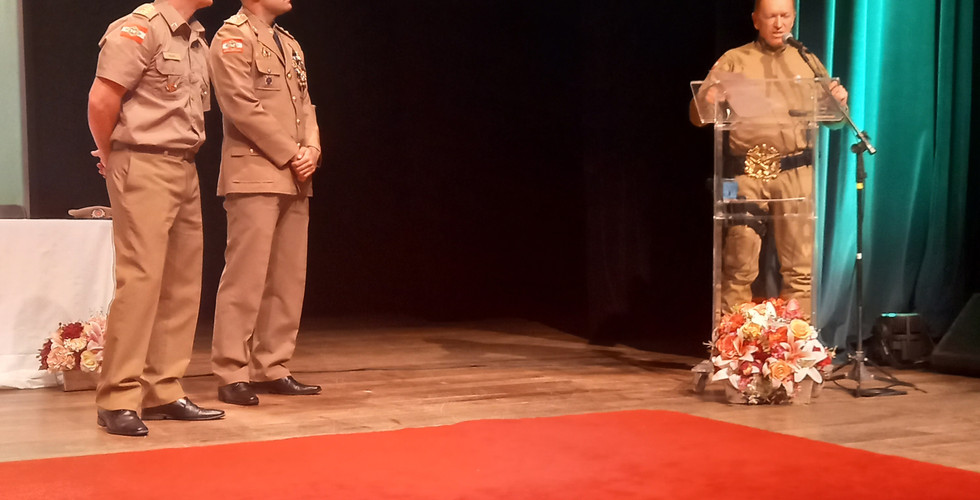 Na tarde desta terça-feira (28), o presidente da Associação dos Militares Estaduais - AME-SC, subtenente Cleber de Paulo Irmão, participou da aula magna ministrada pelo comandante-geral da Polícia Militar, coronel Aurélio José Pelozato da Rosa aos alunos sargentos do Curso de Formação de Sargentos - CFS.