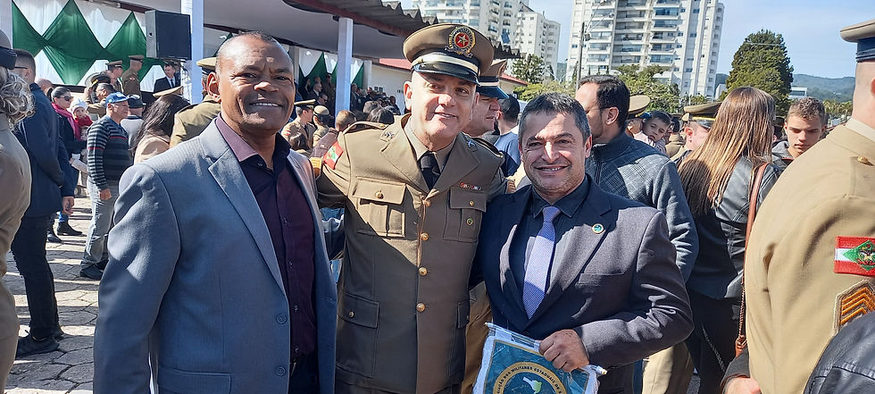 Na manhã desta quinta-feira (11), o presidente e vice-presidente da Associação dos Militares Estaduais - AME-SC, respectivamente, subtenentes Cleber de Paulo Irmão e José Geraldo Maria, prestigiaram a solenidade de promoção de praças e oficiais da Capital e região. Em todo o Estado, foram promovidos 944 praças e oito oficiais.
